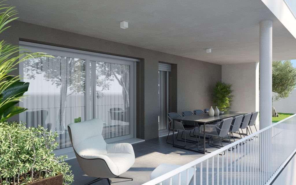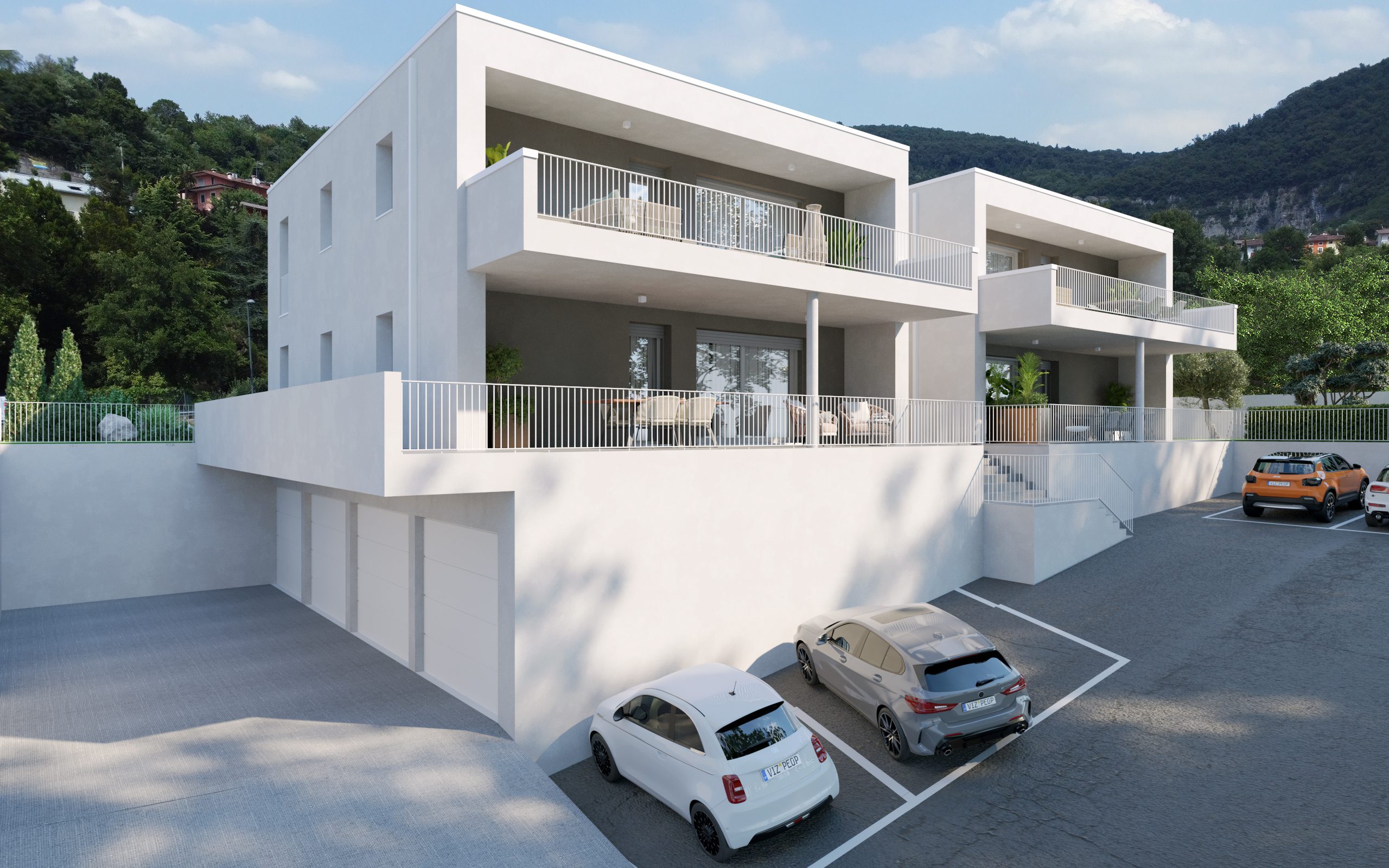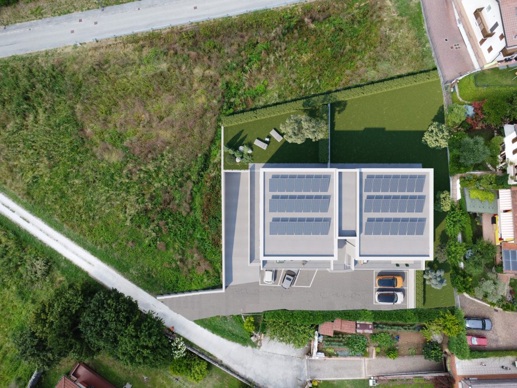 Un moderno residence di nuova costruzione a Cornedo Vicentino, caratterizzato da linee pulite e contemporanee.