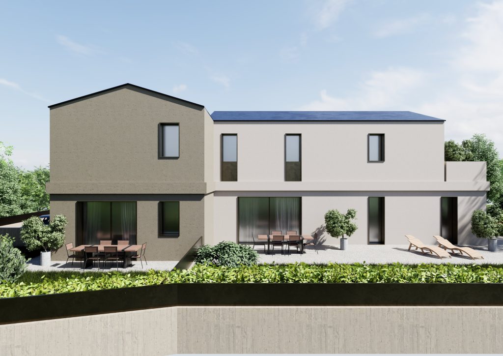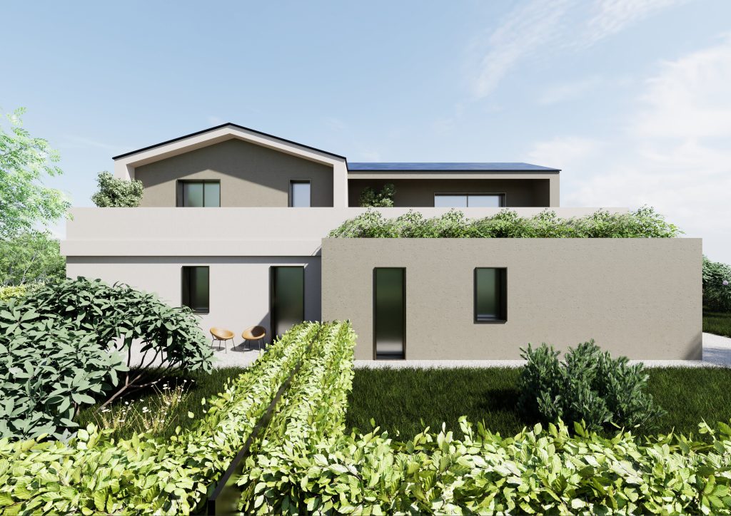 Il progetto si distingue per un’architettura essenziale e raffinata, dove volumi puri e materiali naturali dialogano armoniosamente con l’ambiente circostante.